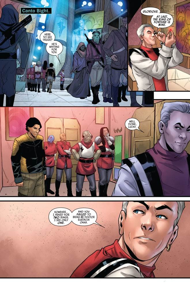 This issue serves as more of a transition between the exploration of Dianth and the inevitable confrontation with Tagge than an action-packed romp, but it’s still a tremendous amount of fun to see how the team gets from point A to point B, and to go along for the ride as Aphra and her mentor Professor Eustachia Okka make decisions that probably aren’t the safest bet, but will likely lead to the most interesting of all possible outcomes, both for them and for us, the readers. I also enjoyed seeing more of Canto Bight and its casinos-- first introduced in 2017’s Star Wars: The Last Jedi-- as Tagge has evidently settled into the planet Cantonica as his base of operations.