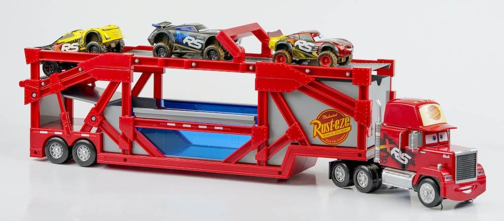 Load them up and haul them out! Mack has a lot to say for himself as he transports Lightning McQueen and five of his friends from Disney and Pixar's Cars films. Mack features character phrases and light-up headlights, plus space for additional vehicles.