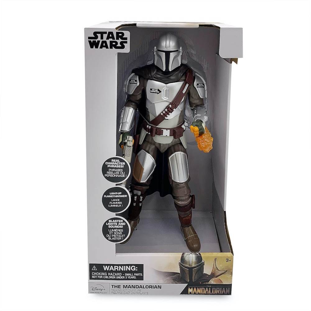 Bring the drama and excitement of The Mandalorian to life with this talking action figure of the notorious bounty hunter. Highly detailed, with multiple points of articulation, it features character phrases from the Disney+ series and includes a light-up flamethrower and sound effects.