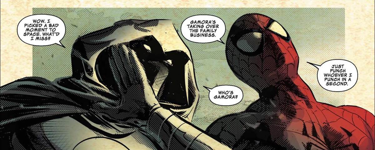 Moon Knight is, shall we say, not all there. So when an intergalactic cataclysmic event is unfolding right in front of him, it shouldn’t come as a total surprise that he “spaced.” Still, it’s probably not the best look for an Avenger to simply have to punch whoever Spider-Man punches.