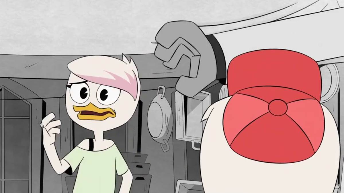 Lastly, Huey and Lena face off against the sneaky Steelbeak (Jason Mantzoukas) as they attempt to pry the sword’s blade from an ornate design in the city’s pavement. Lena uses her magic to freeze time in Huey’s mind, where the young duck must confront an inner demon and eventually use its rage to defeat their enemy. Then, the entire gang reunites to stand up against F.O.W.L. in the town square, where Scrooge relies on his enemy’s overconfidence and his own knowledge of Swanstantine’s sword to bring the conflict to a satisfying conclusion. It’s a clever way to tie an entertaining and guest star-packed anthology-style episode together in the end.