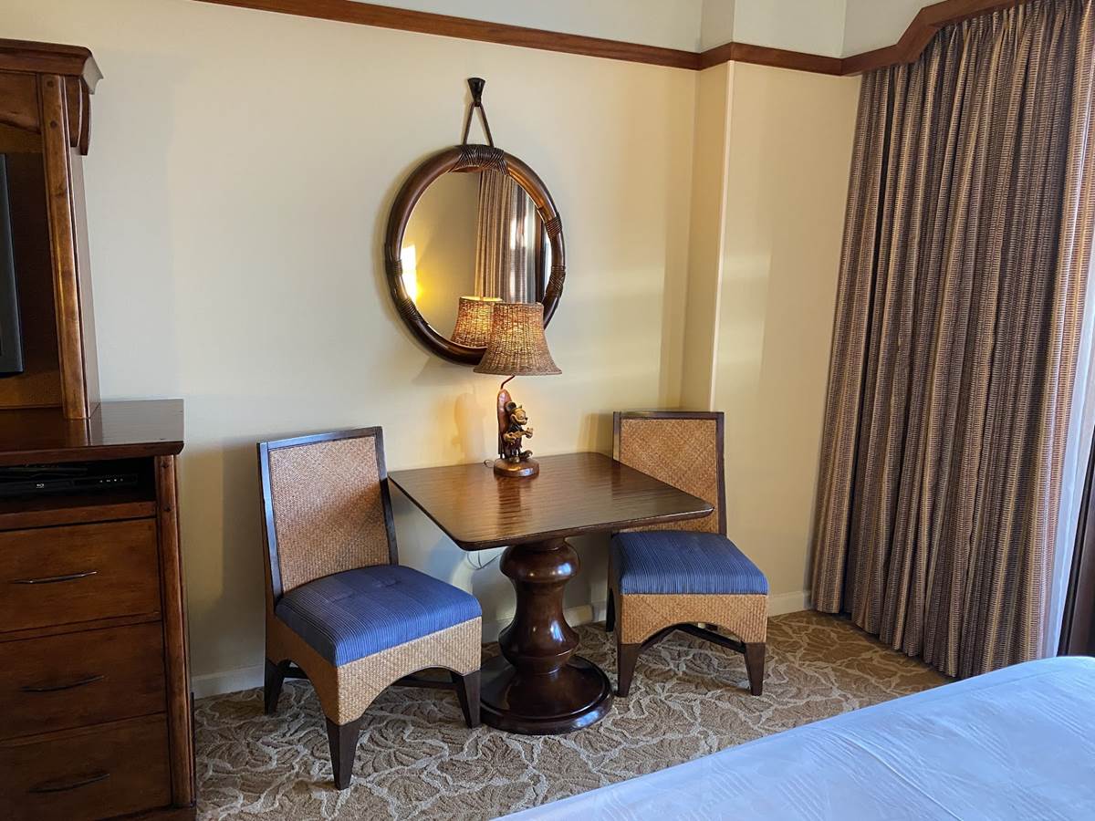 Disney rooms are famous for having a uniquely Disney touch and at Aulani, it’s a desk lamp with a wood carving of Mickey Mouse and a surfboard. If you fall in love with it, they sell it in the gift shop.
