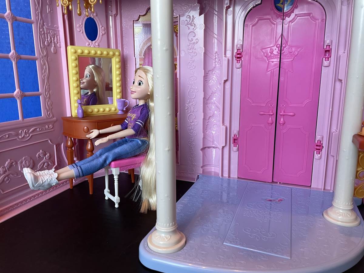 Rapunzel’s long hair means she needs a little extra time to get ready at the mirror.