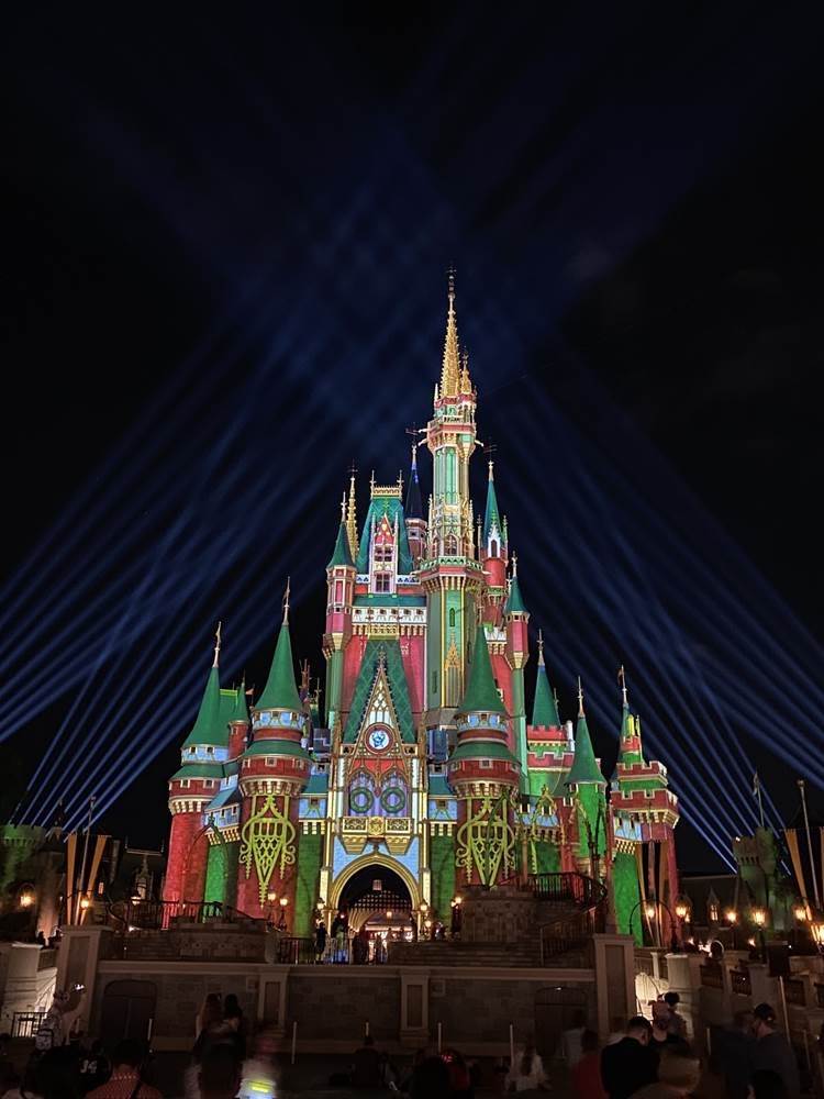 Bring some festive style to your next Disney Parks trip with the Passholder Exclusive holiday MagicBand. The castle is set against a bold red background and is shining with gold and green turrets, and red and green towers. A layer of snow has even collected on some of the balconies!