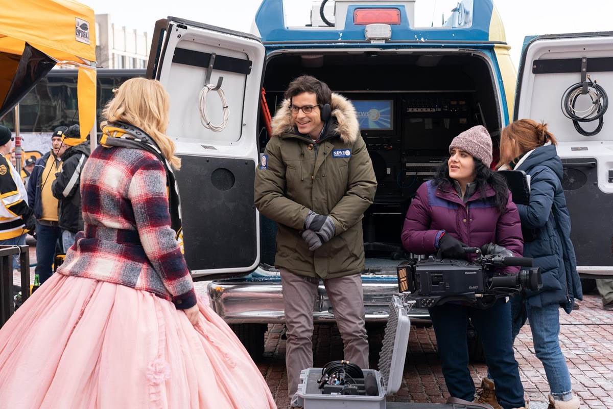 Sharon: It was very important for us to try and shoot in a city that just didn't feel like Anywhere, USA, that felt like a local city with a local news station and also a city that offered us the chance of snow because we are doing sort of like real life comedy, but the idea of there would be snow in the winter, brings a fairytale element to it, which I was quite excited by.