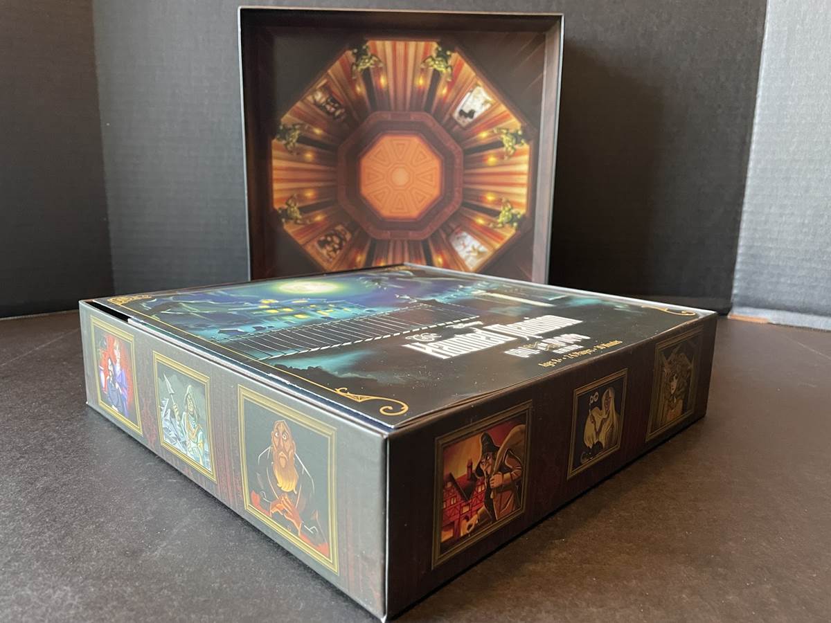 A very nice touch, the underside of the lid becomes the stretching portrait room and the sides of the box are decked with portraits from the mansion’s gallery.