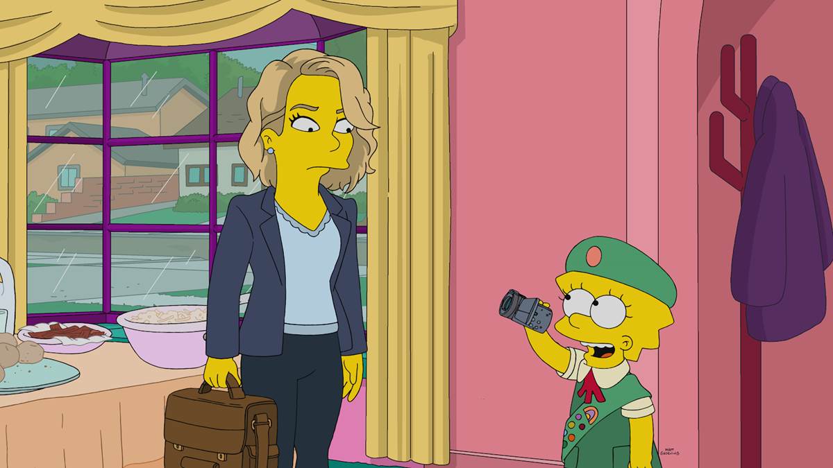 A woman named Mary (voiced by guest star Ellie Kemper of The Office fame) walks into an executive’s office at the Heartmark channel. She’s ordered to “put out a few fires” on the production of a holiday movie called A Christmas Ornament for Christmas and sent to Springfield in the middle of the summer, where Moe (Hank Azaria) picks her up as her taxi driver and she stays at the Simpson home as her Air B&B. The children sing her a welcome song to the tune of “Hark the Herald Angels Sing.” Bart (Nancy Cartwright) wants to sleep in his treehouse, but Homer (Dan Castellaneta) has also rented it out to the movie’s sound effects guy. Marge (Julie Kavner) gushes over Mary’s job and says she has seen all of the Heartmark Christmas movies. Mary tells Marge she doesn’t actually like Christmas movies, and Marge tries to feed her a continental breakfast full of gluten and lactose, neither of which she eats.