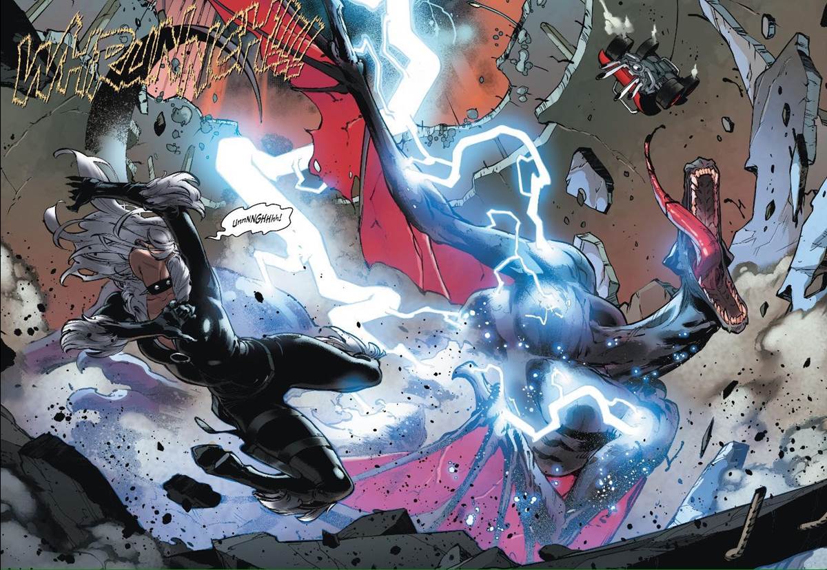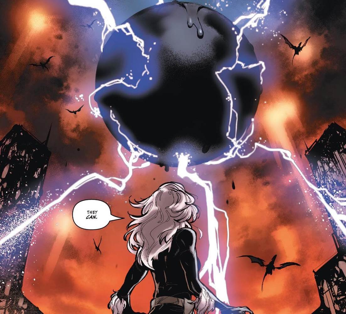 Despite and evacuation order in the city of New York, Felicia Hardy is working on her latest job. She’s hard at work at ripping off some other militant group for her own profit when her mission is interrupted by a massive symbiote dragon. Knull has arrived and now the Black Cat is aware of it.