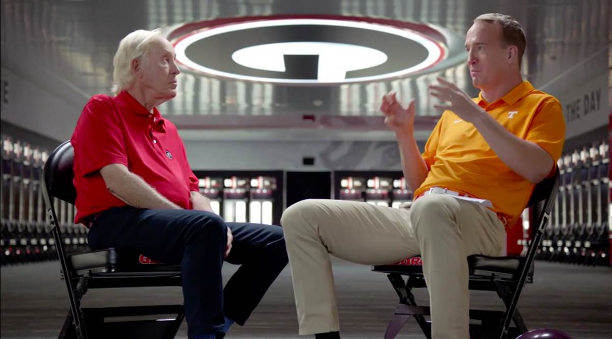The episode opens with Peyton and Tarkenton walking into Sanford Stadium, home of the University of Georgia football team, where Tarkenton played his college ball. Peyton, being an alum of the University of Tennessee, was a little uncomfortable in enemy territory. To make matters worse for Peyton, they run into Uga, the Georgia Bulldogs’ mascot. In a humorous opener, the two try to make peace after their long rivalry.