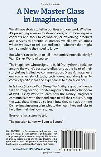 Tell Your Story The Walt Disney World Way teaches readers – and the characters therein – how Disney’s Imagineers communicate with their audience to tell their stories. The book goes beyond the search for Hidden Mickeys and explores the tools, techniques and disciplines of how Imagineers effectively communicate an idea and tell a story. The best part is that the book is written in such a way that it not only encourages, but maps out a plan for, readers to consider how they might communicate their very own stories and ideas.