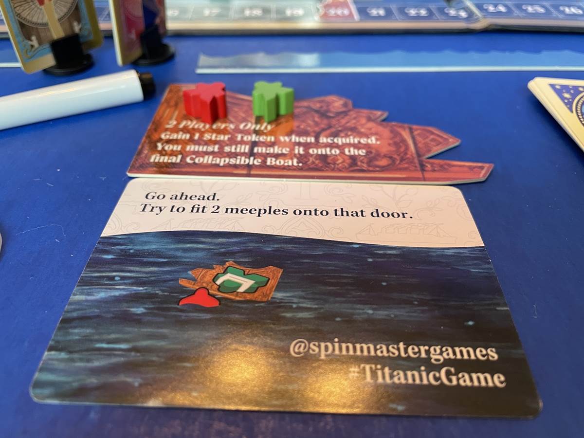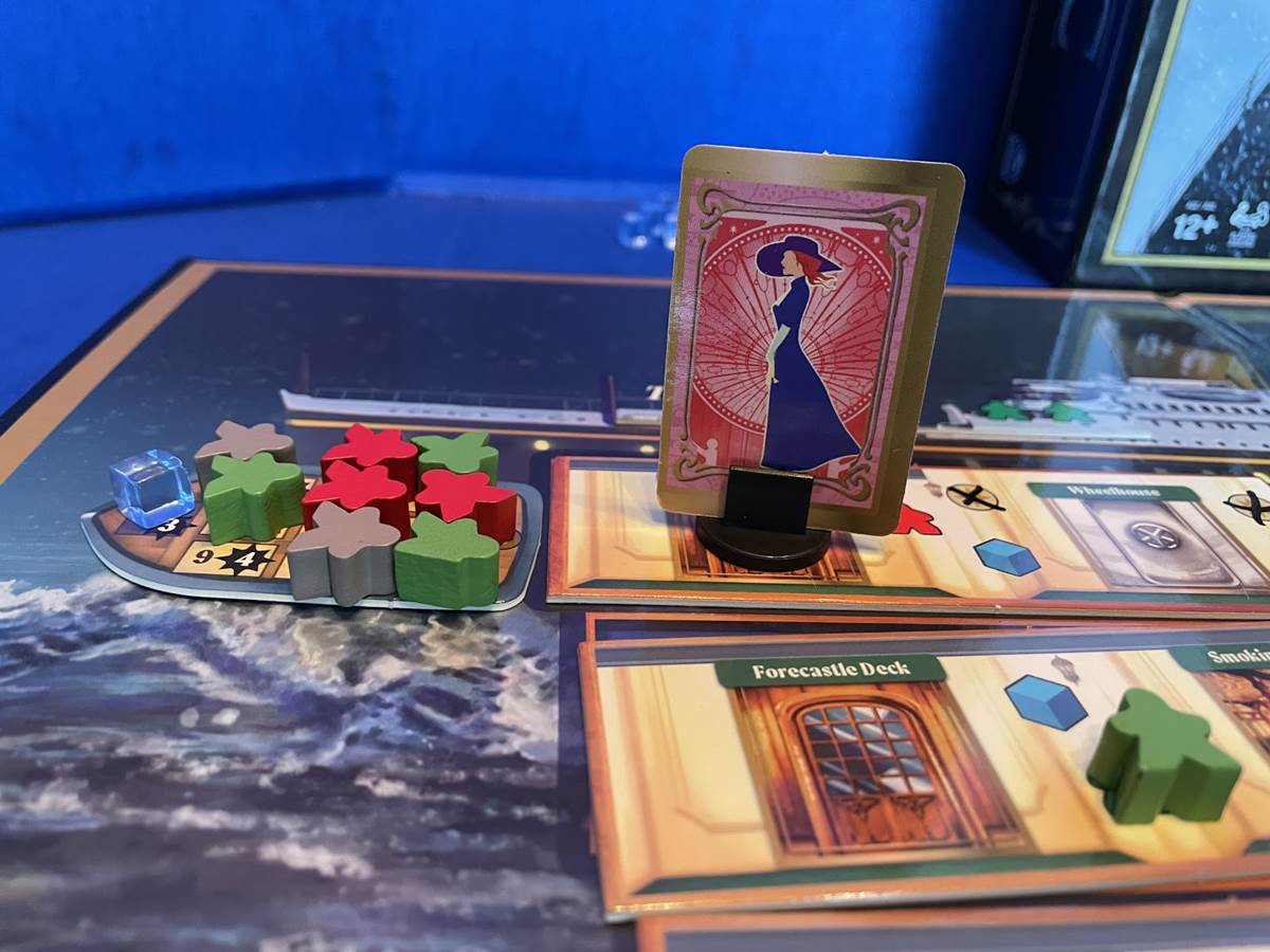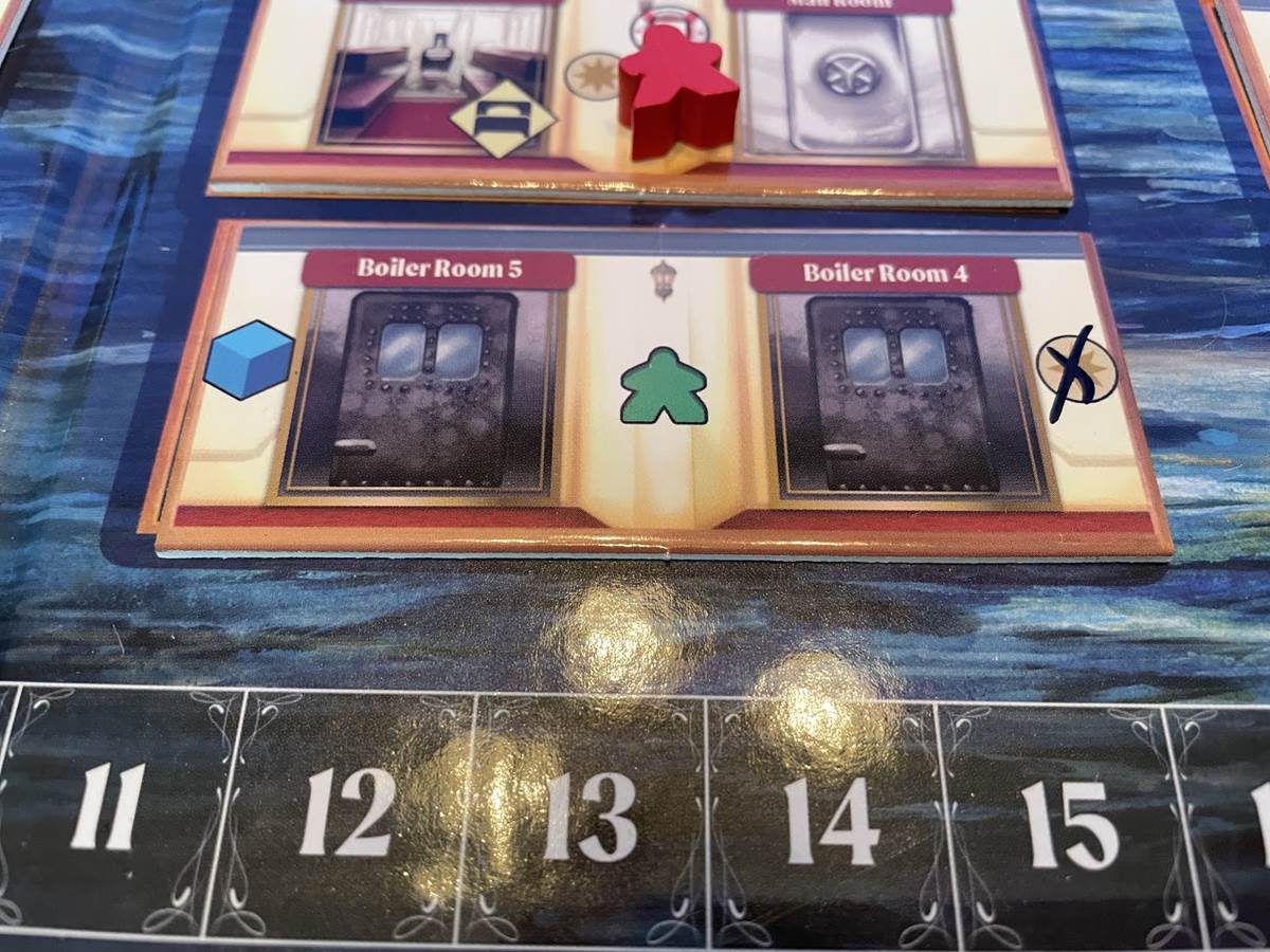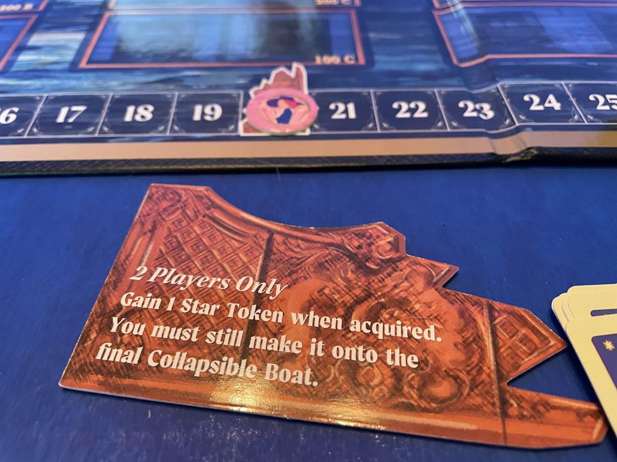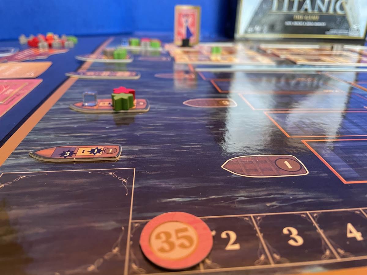 There isn’t a specific starting spot, so players can choose any room in the lowest deck to start the game from. There is a definite end space, though, the last collapsible lifeboat on the top deck, which is also the last one to depart.