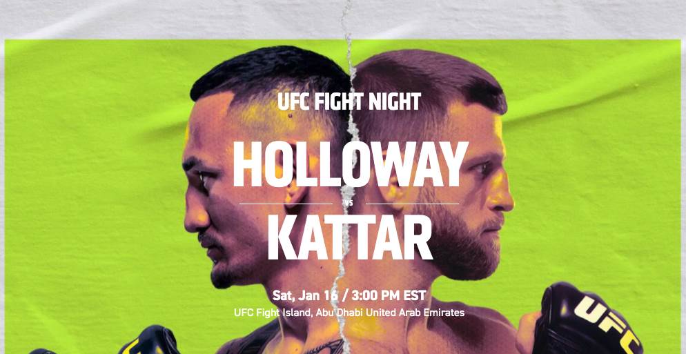 UFC Fight Night: Holloway vs. Kattar will be held Saturday, January 16 at 3 PM ET. Fight fans watch live on ESPN+ or on ABC.