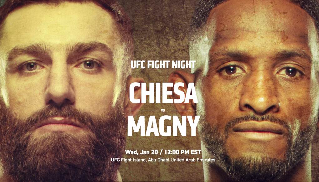 UFC Fight Night: Chiesa vs. Magny will be held Wednesday, January 20 at 12 PM ET. Fight fans watch live on ESPN+ or on ABC.