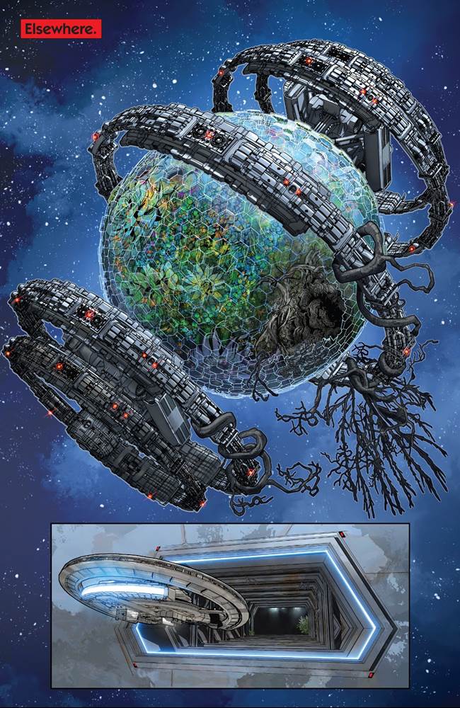 Early on in Into the Dark, a group of Jedi Knights and their hired transport crew arrive at an ancient, abandoned Amaxine space station after being detoured from their hyperspace route toward the ribbon-cutting event for a different, freshly constructed space station called the Starlight Beacon. The Amaxine station is made up of a giant center orb surrounded by metallic rings and overgrown with plant life. And as soon as I realized I recognized that the book, I ran to my comic book collection to fish out my copy of Star Wars: The Rise of Kylo Ren #1, written by Charles Soule with artwork by Will Sliney. Sure enough, the space station being used as a home base by eventual First Order Supreme Leader Snoke in the comics matched the description from Gray’s novel to a tee-- though at that point the station is only referred to as “Elsewhere,” teasing its cryptic nature. Exploring the Amaxine station further in the book, the Jedi even come across the imposing stone throne we see being used by Snoke in the comics when a young, disenchanted Ben Solo flees Luke Skywalker’s Jedi training academy to find solace under the tutelage of this mysterious being.