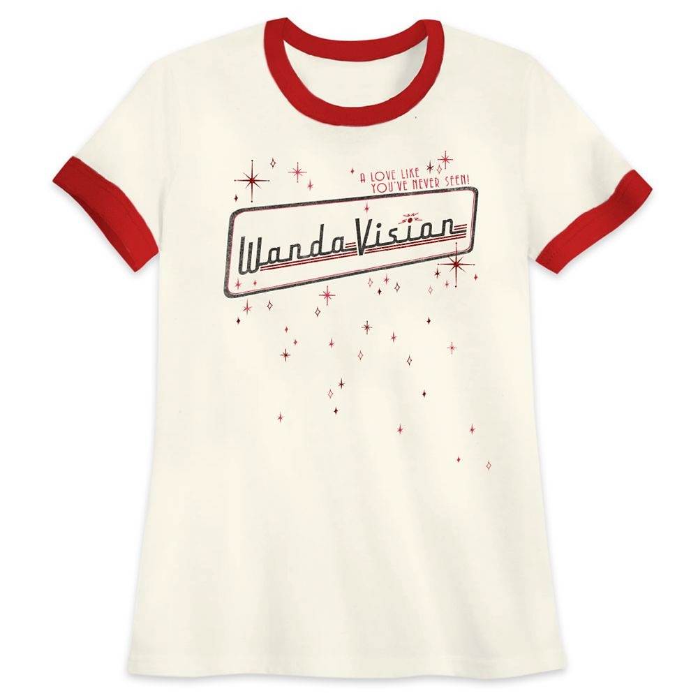 shopDisney also introduced new themed shirts. The first is a green and yellow top that’s perfect for Vision cosplay, and a WandaVision retro logo ringer tee.