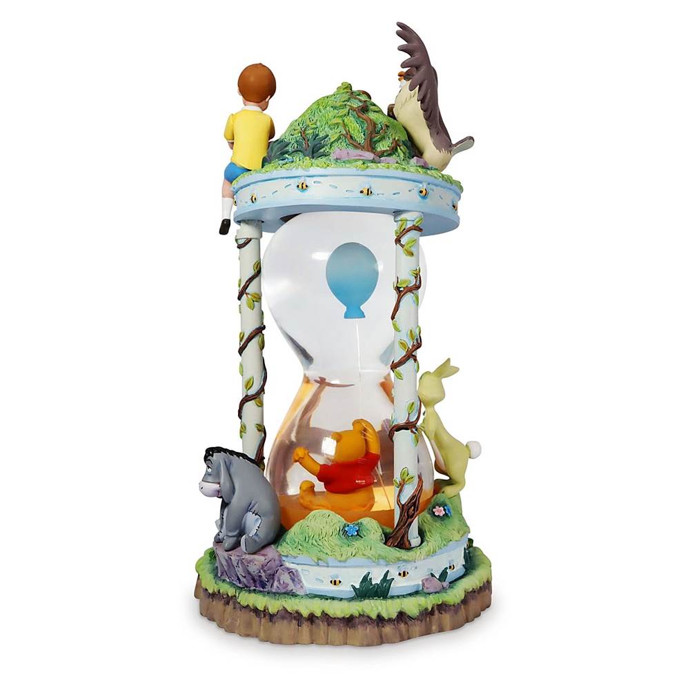 “Celebrate the 55th anniversary of Winnie the Pooh and the Honey Tree with this finely detailed, fully sculpted hourglass featuring a splendiferous cast of characters. Turn the hourglass to see the sand flow around Pooh who sits inside holding a blue balloon.”