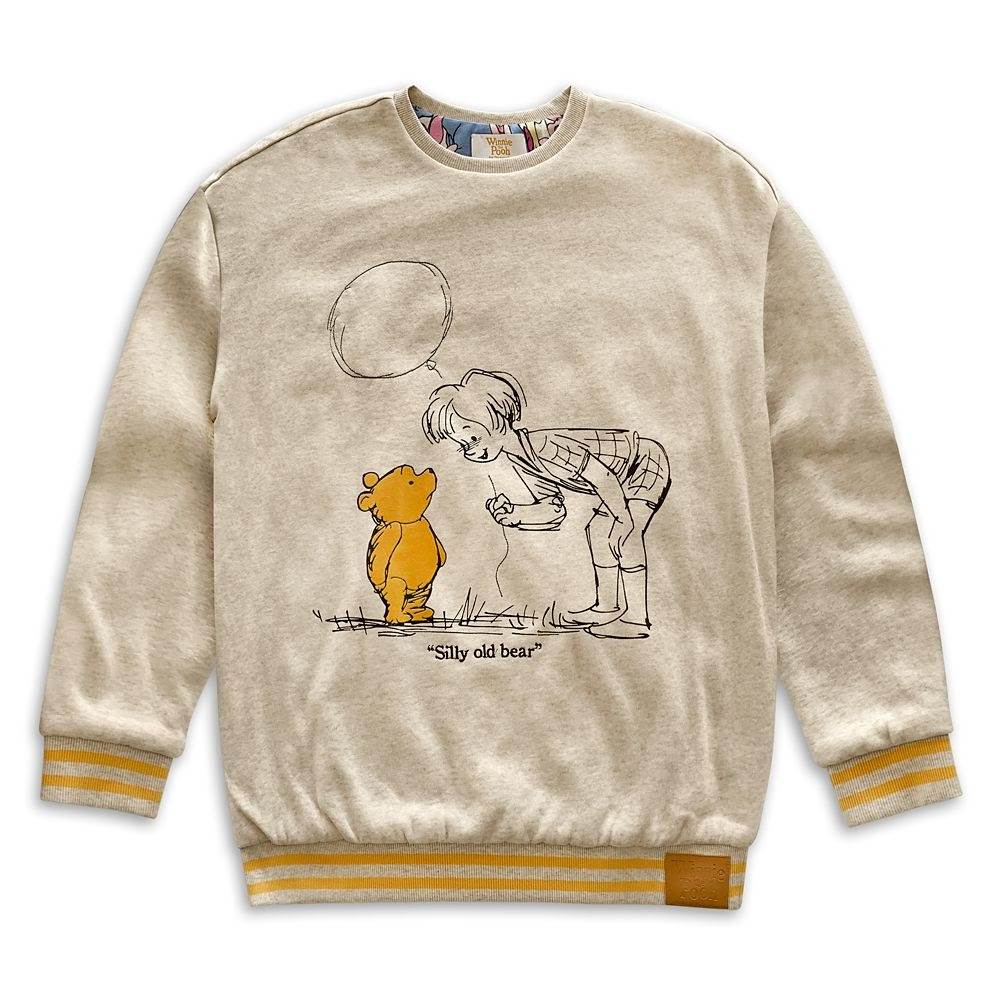 It’s like two shirts in one! One side features Christopher Robin and Pooh on a cream colored background with the quote “Silly old bear.” The other side is an allover print with Pooh, Piglet, Tigger, Eeyore, and Rabbit.