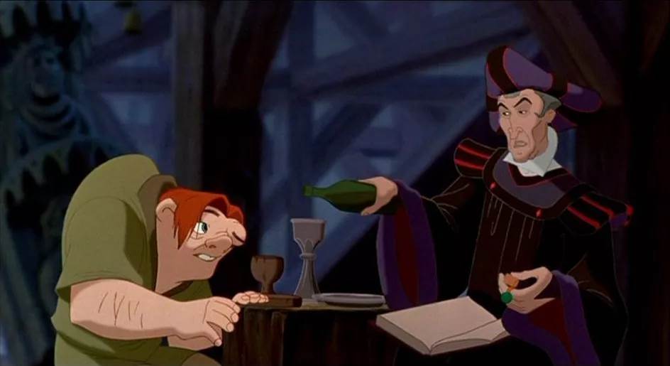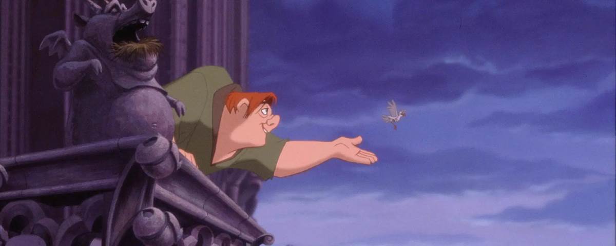 Anybody familiar with the original story of The Hunchback of Notre Dame may recall that there are a ton of characters present in the original novel aside from the namesake Hunchback, Quasimodo. He said that was where one of the hardest parts of writing the movie adaptation lied, especially for a Disney animated film, noting that there was a certain “checklist” of sorts for a Disney film that the characters had to hit. So they developed the film around the characters that would best fill the roles of the principal lead (Quasimodo), the Hero (Phoebus), and the Princess (Esmerelda), along with the obvious villain, Claude Frollo. He said that the story was exceptionally dark for a Disney film, but he found the heart in it when you would take away everyone else leaving Quasimodo to do his own thing with the birds or the gargoyles, and the world got bright and colorful. This sentiment is actually echoed in the production design of the film, whenever Frollo is present, the colors are grays and dark shadows, and muted and boring hues, but whenever Quasi is involved in his own thing there are far more colors and brightness.