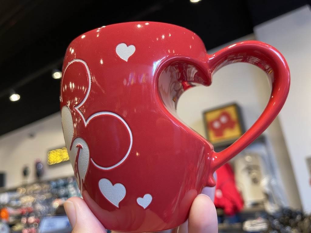 What better way to celebrate Valentine's Day than with Disney’s first couple? The lovable duo are looking quite happy on this cute red mug that features a heart shaped cutout near the handle. You’ll also notice that Mickey and Minnie are styled after their early appearance as Minnie is wearing her classic and flower.