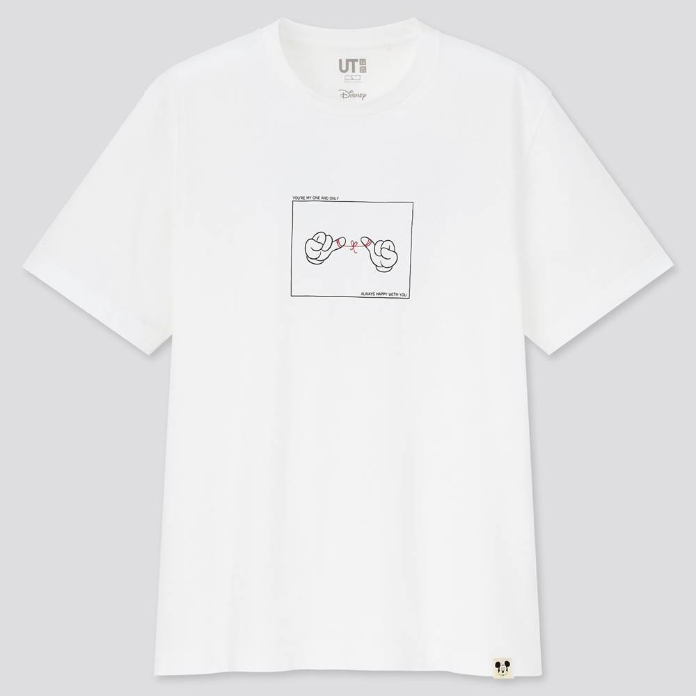 Tie a string around your finger so you don’t forget to bring home this graphic tee. The design includes Mickey hands with a red string attached between his “pinky” fingers. The text reads “You’re my one and only. Always happy with you.”