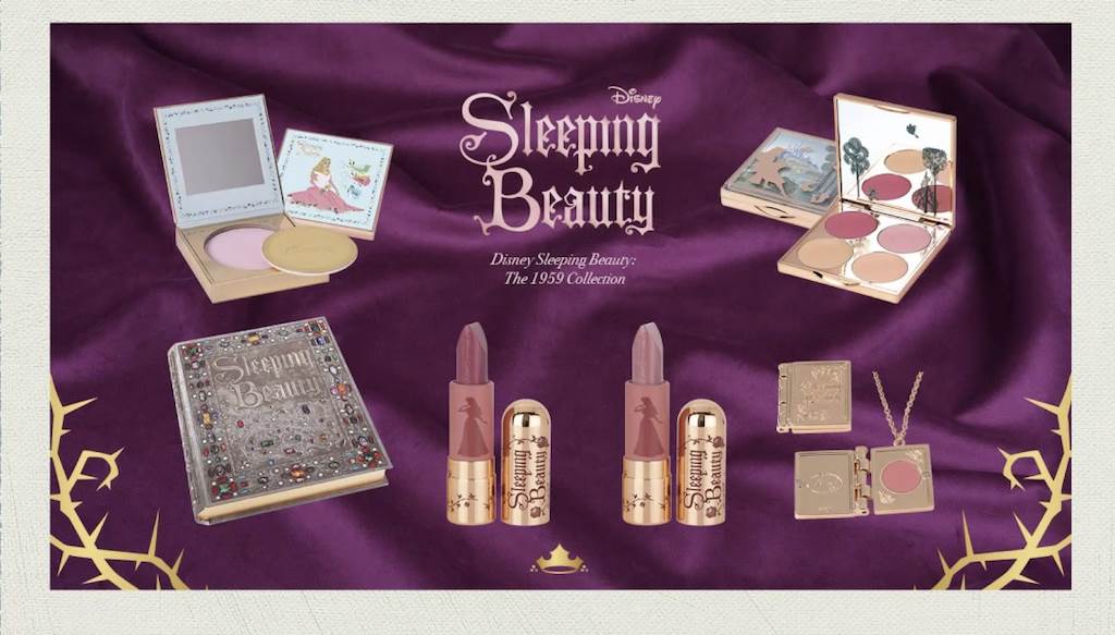 For the next collaboration, Gabriela turned to Sleeping Beauty. She noted how the style of beauty and color palette changed from Disney’s earliest feature to this one, and along with it the makeup choices for Aurora and the fairies. She was also very taken with the artwork of Eyvind Earle and worked to include his designs into the packaging. For her research into the film she visited Disney Grand Central Creative Campus as well as the archives.