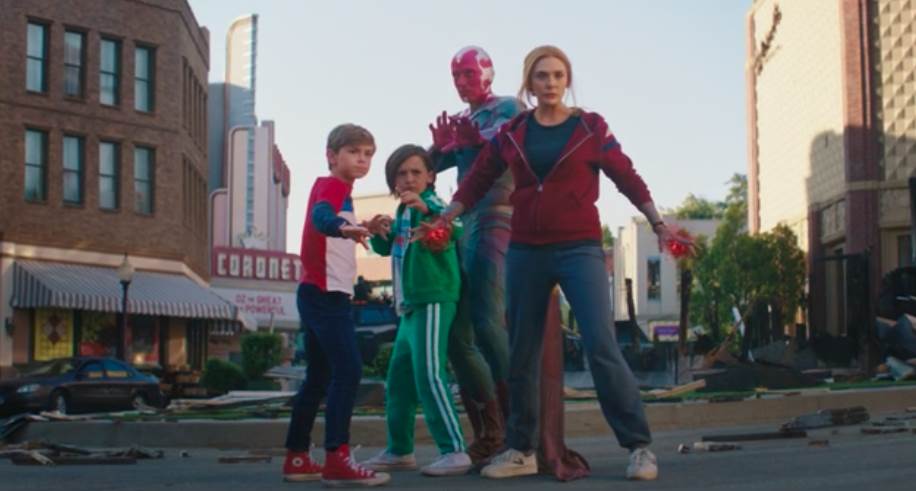 The boys and Vision come back to Wanda for their happy ending. It’s short lived though as Vision tells her he knows she’ll set everything right, but not for them. She tells him he’s right and they had off into the sunset, but not before Wanda and Monica share a look.
