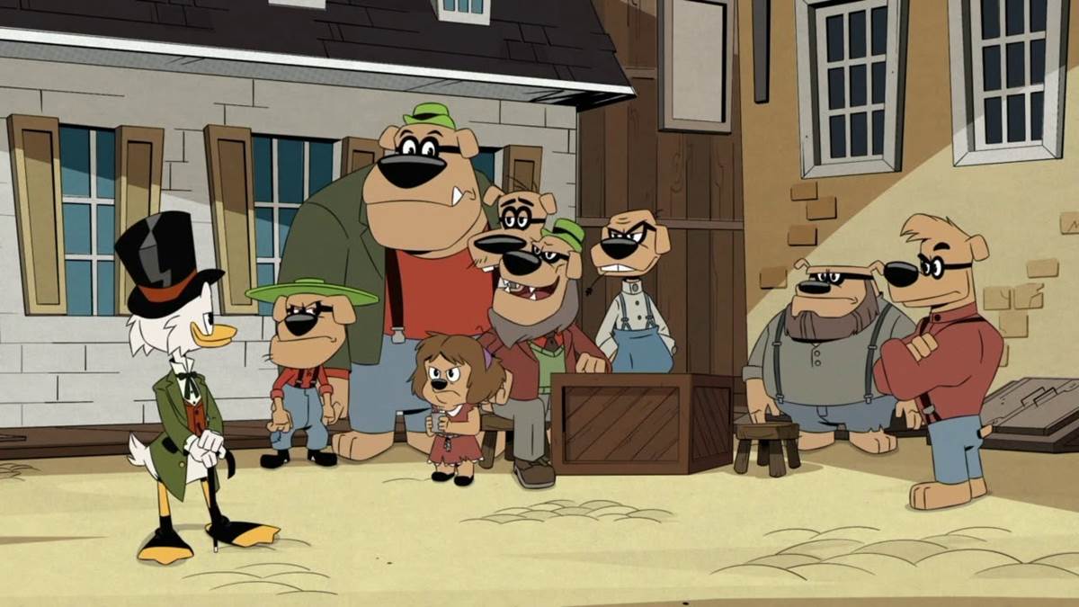 Naturally Glomgold is decreed to be the architect of his own fate, but a more challenging case is presented in the flashback involving Ma Beagle, who came face-to-face with Scrooge at a young age when the “Adventure Capitalist” out-swindled the swindlers in the Beagle family. Her father, the never-before-seen Pappy Beagle (prolific voice actor Eric Bauza of Transformers: Robots in Disguise), loses to McDuck in an arm-wrestling match that Scrooge reveals to have been rigged and therefore wins the Beagle family town, causing the young “Ma” to swear a lifelong vengeance. But Louie-- acting as Scrooge’s counsel in the case-- cleverly has the court play further into the flashback, and we discover that Ma Beagle was already rotten to the core, so she’s sorted into the “innocent” side of Lady Justice’s scale in favor of Scrooge’s vindication.