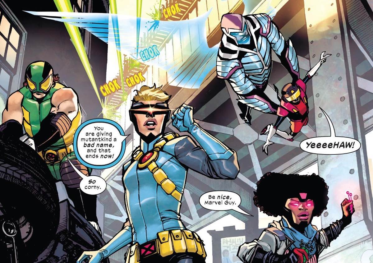 But can the X-Men allow a team of young mutant vigilantes, who are clearly inspired by their classic style, to continue to operate outside of the safety of Krakoa? How can they do anything about it short of kidnapping these young mutants and taking them from their homes?