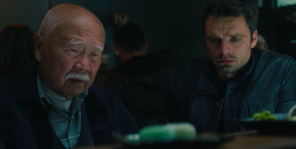 Bucky meets up with his elderly friend Yori just before he gets into a fight with his neighbor. He takes Yori out for lunch and the old man pushes Bucky into a date with the waitress. Bucky tells Yori he hasn’t danced since 1943 before adding “it feels like.” Clearly, Bucky is trying to conceal his identity and almost slipped up there. Yori stares into the distance before telling Bucky about his son, who was killed. Now we know why Bucky has befriended this man.
