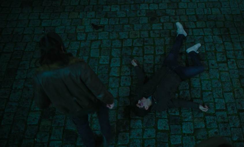 We then cut to a luxury hotel where a group of young people leave a work meeting before the camera pans up and we see a shadow lurking on the roof. As a different group of more intimidating looking people make their way out, the Winter Soldier punches his way through a wall and makes short work of the whole group before saying “Hail Hydra.” One of the young men from the first group sees the whole thing and nervously tries to open the door to his room. The Winter Soldier approaches him and kills him. Once he pulls the trigger, Bucky wakes up from the nightmare.