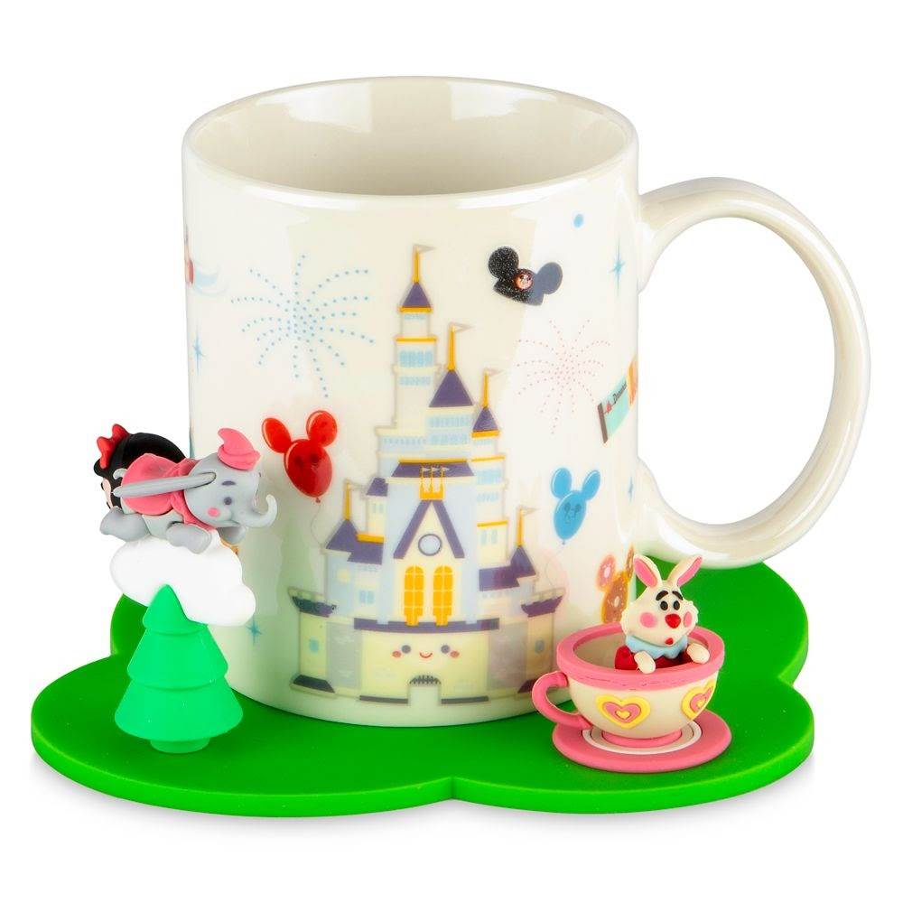 “Drink in that Disney Park life when you enjoy your morning brew from this ceramic mug featuring screen art of Fantasyland Castle, Mickey Mouse balloons, ear hats, Mickey Mouse donuts, and more.”