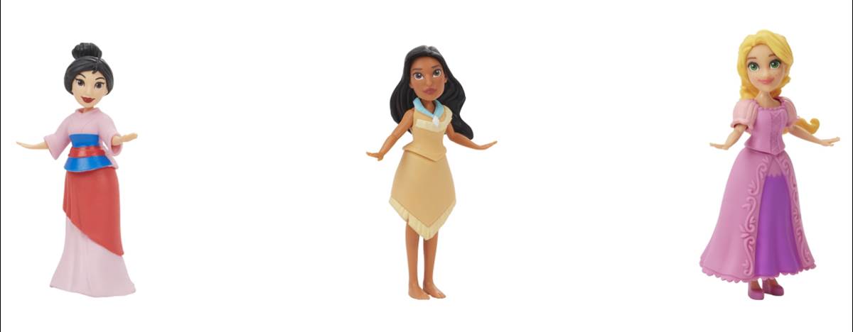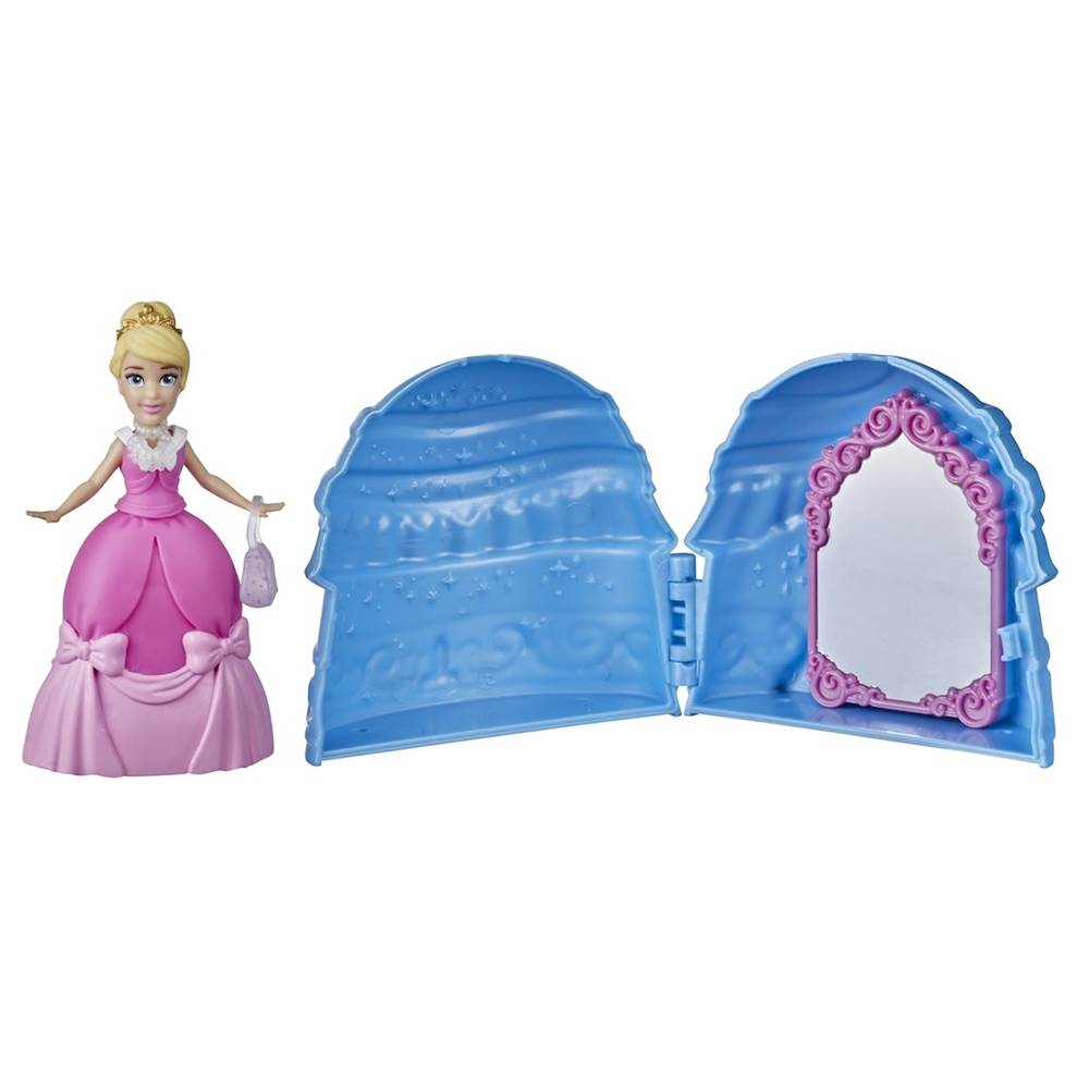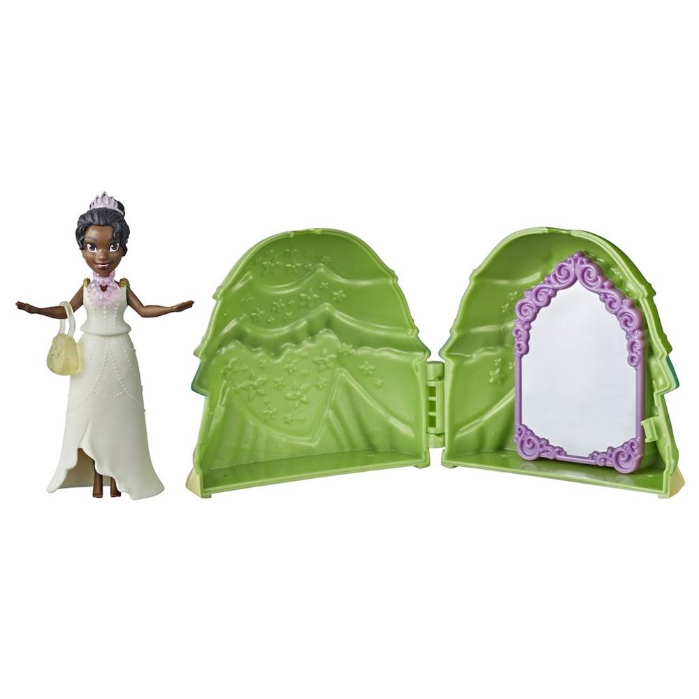 - Each 3.3-inch Disney Princess doll comes in a large skirt that opens up to reveal a compartment inside, complete with mirror. Kids can dress up their doll in different skirts, bodices, and shoes they'll find inside. They'll also find purses and necklaces to complete her look.