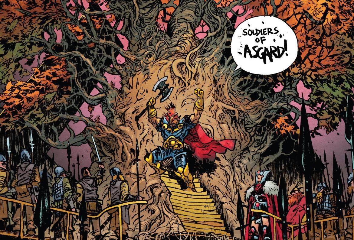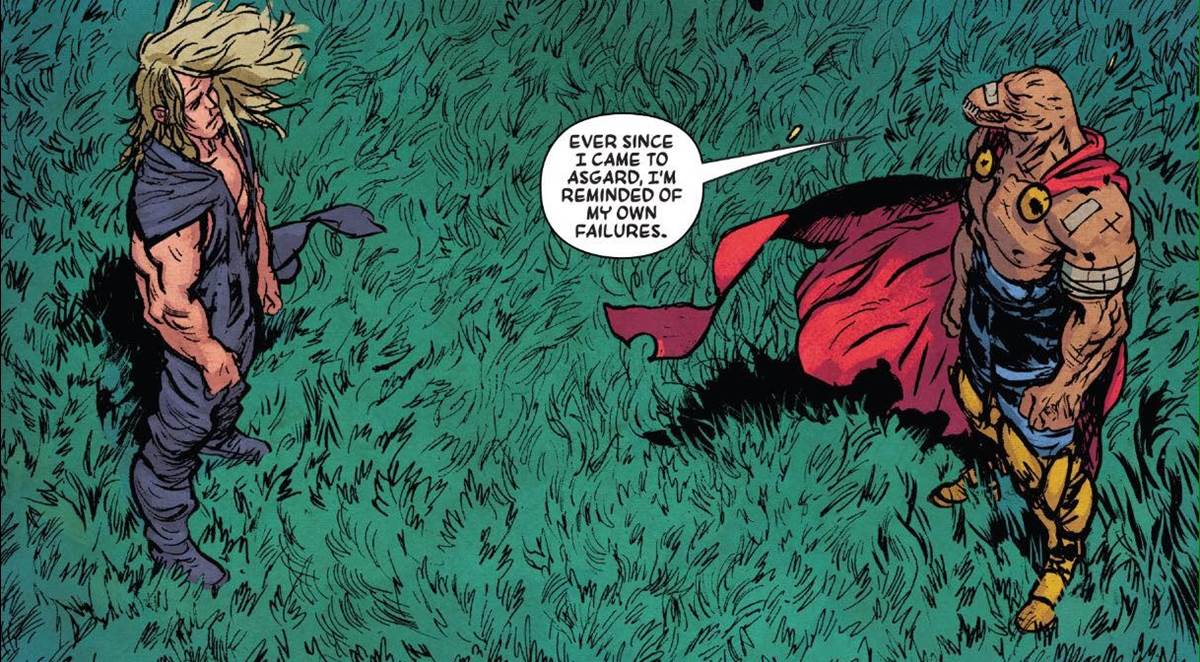 But the fight is only half the story here. There’s a much bigger story going on within Bill himself. The hero has proven his worth again and again and yet, without Stormbreaker, he is lost. Despite the fact that Thor has given him access to any weapon in Asgard, he’s still not quite the same.