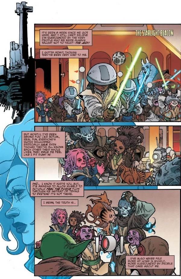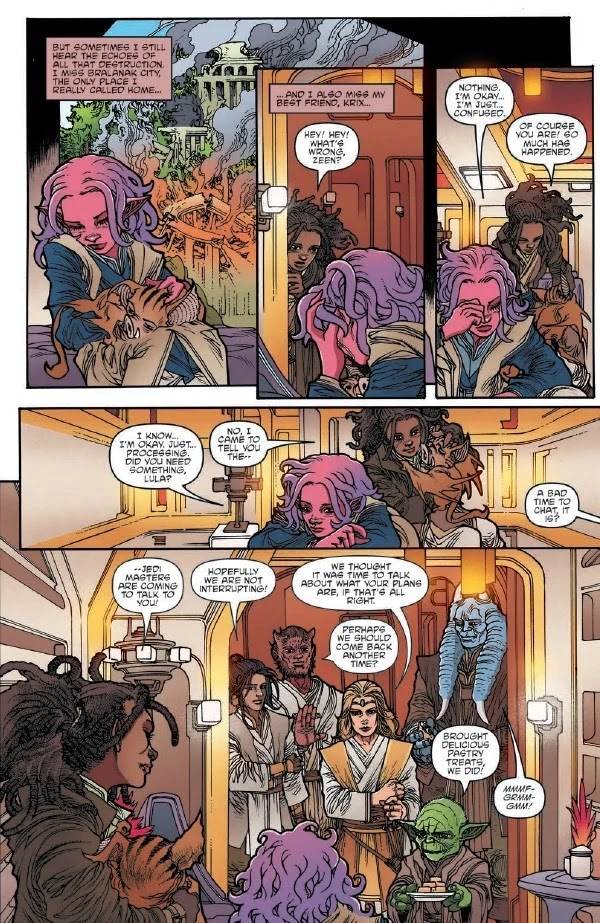 Star Wars: The High Republic Adventures issue #3 opens with a young Mikkian Force-user named Zeen Mrala having been taken to the Starlight Beacon space station by the Jedi, though she is “too old to begin the training”-- a familiar phrase, but we’ve certainly seen that particular rule broken before.