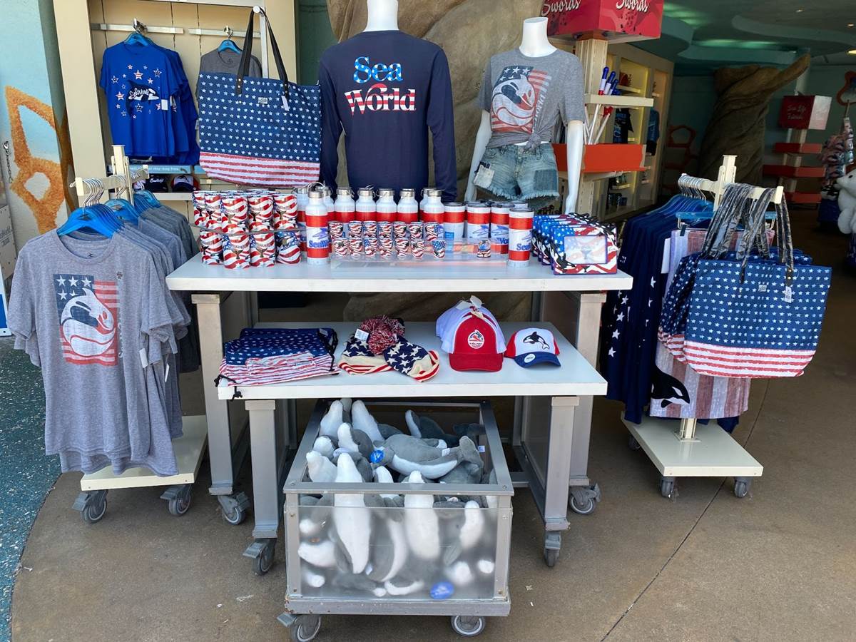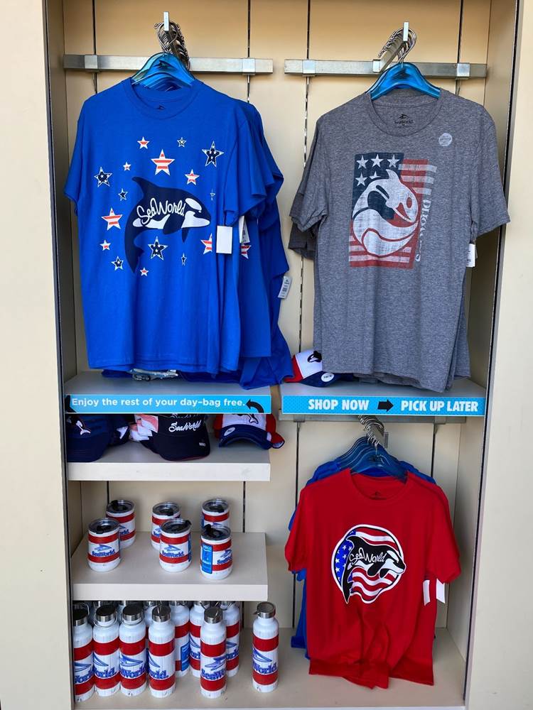 So while SeaWorld San Diego won’t have all of its attractions available for at least another week and a half or so, it was worth the visit to check out the rest of what the park has to offer. And I noticed on my way out that SeaWorld’s Memorial Day / Fourth of July merchandise has been put on display in the gift shops, which means the park is indeed preparing for an exciting summer.