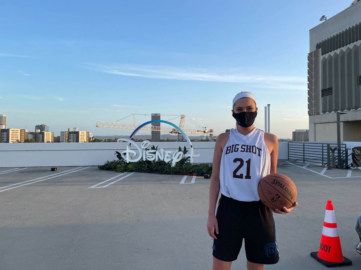 Disney themed the top floor of The Grove’s parking garage, adding Disney+ and Big Shot themed photo opportunities. Servers were dressed as referees and talented basketball players entertained the audience while we waited for the sun to set. DJ Michelle Pesce brought the energy up before the show with some fun and empowering music.