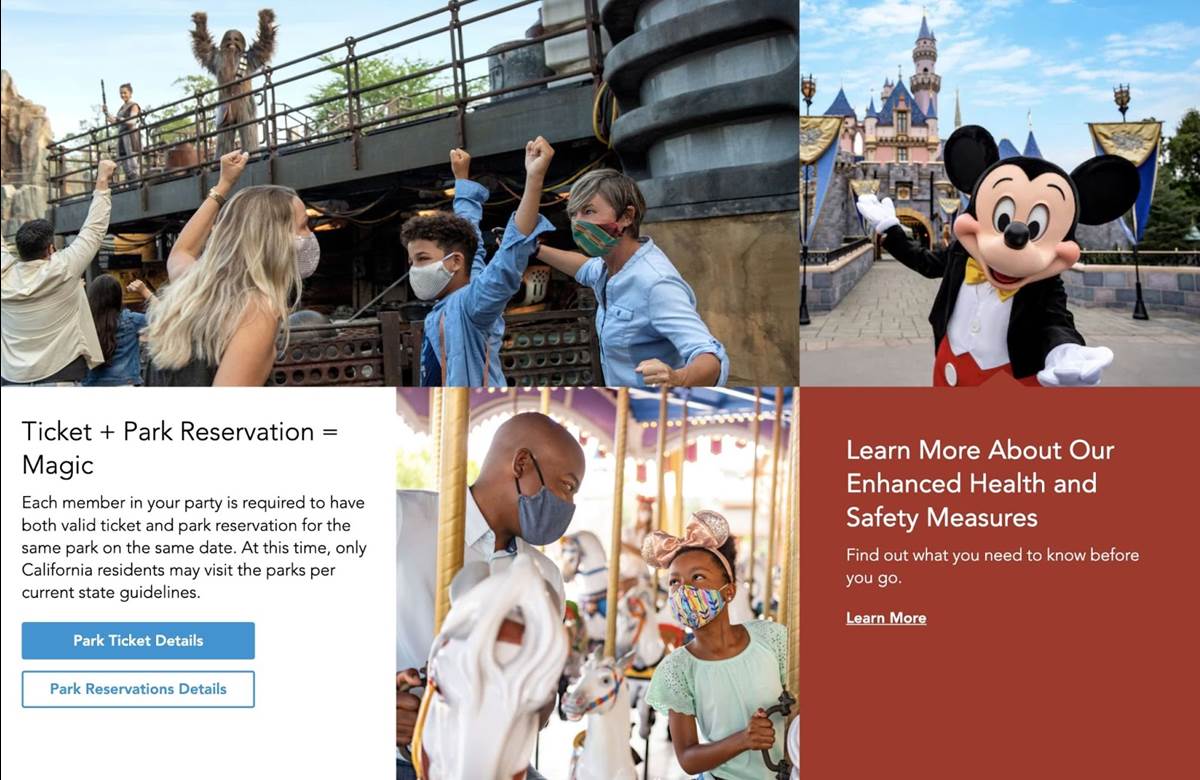 Your journey begins at Disneyland.com where the home page has been updated with a link to start your adventure. Clicking “Park ticket details” will take you to more information about how to plan your visit.