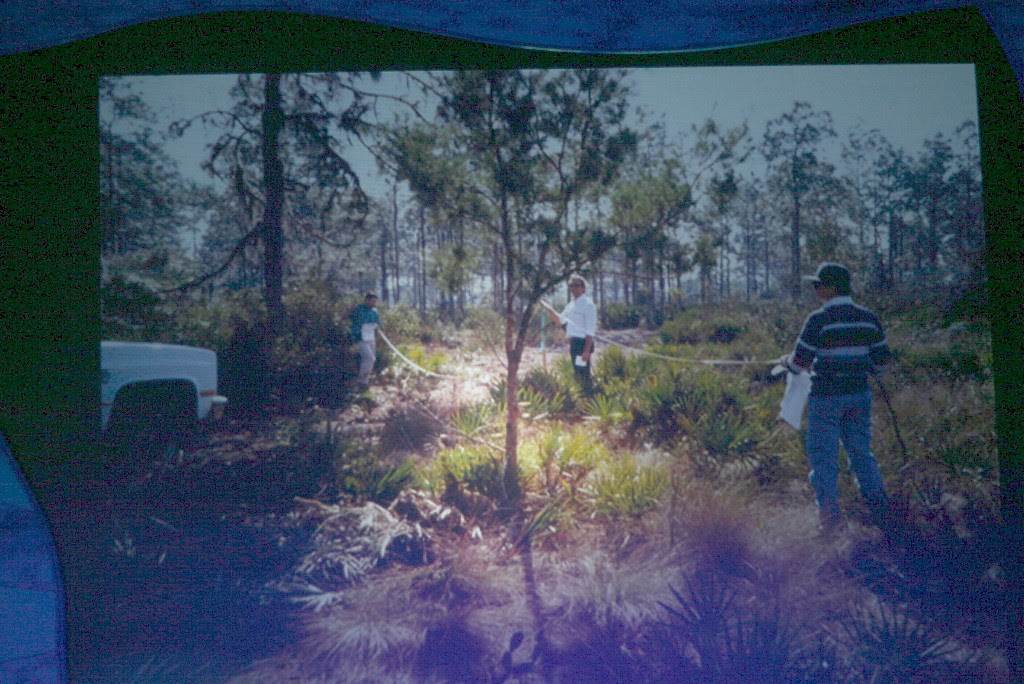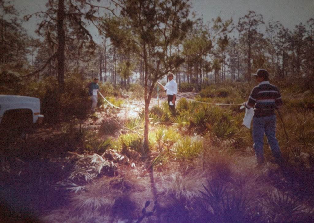 Early images of the team measuring out the land for development, possibly the area of the Tree of Life. Most of the area was scrub pine but there were several large oaks as well. They were able to save those.