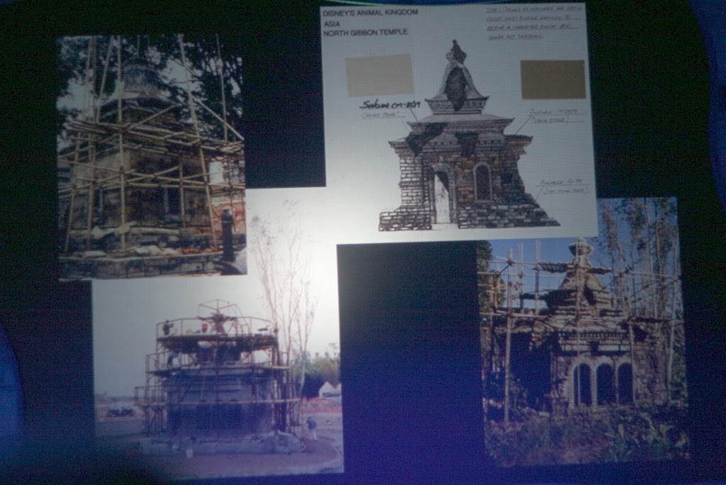 The image in the upper left is the temple with scaffolding that inspired the environment in Asia. It assisted the design team as they were unsure how to provide the gibbons with a playful jungle gym setting while keeping true to the visual designs of Asia.