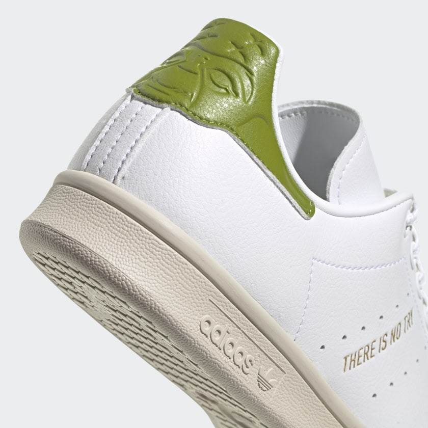 We’ve already seen the Adidas Stan Smith take on Disney’s green characters which featured Rex, Kermit, Tinkerbell and more. Now Master Yoda has joined the collection and is featured on these Star Wars Shoes made with recycled materials. while The back heel showcases the wise Jedi with his traditional green skin while the side of the shoe shares his signature quote, “there is no try.”