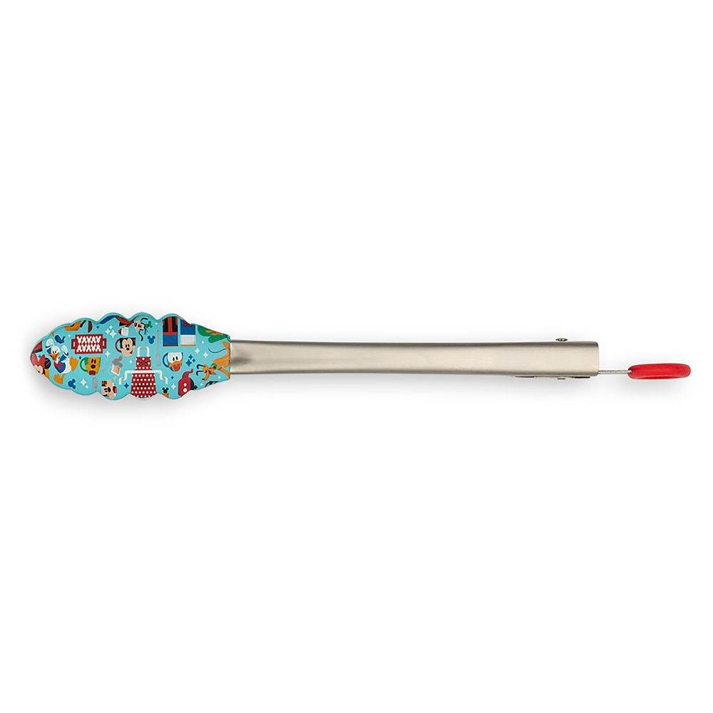 “Mickey and the gang are here to help with too-hot-to-handle items in the kitchen. These stainless steel tongs feature a colorful pattern on the silicone grips and a locking loop at the top keeps the tongs closed when not in use.”