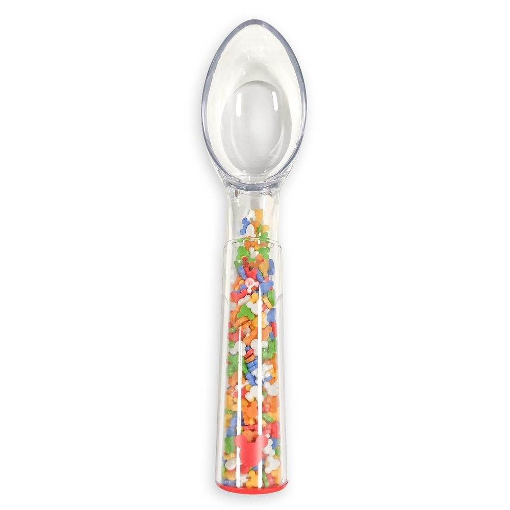 “This Mickey Mouse Ice Cream Scoop is sure to be a clear favorite when it's time for dessert. The translucent acrylic design features a hollow handle filled with colorful Mickey icons that will serve up sweet smiles every time.”