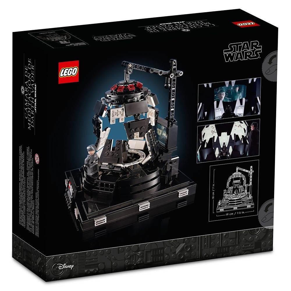 “Relive a dramatic scene from Star Wars: The Empire Strikes Back as you build the first-ever LEGO brick model of the Darth Vader Meditation Chamber. The chamber opens and closes just like the real thing and features a big screen, control panels, a rotating seat for Darth Vader and a place for General Veers to stand opposite him.”