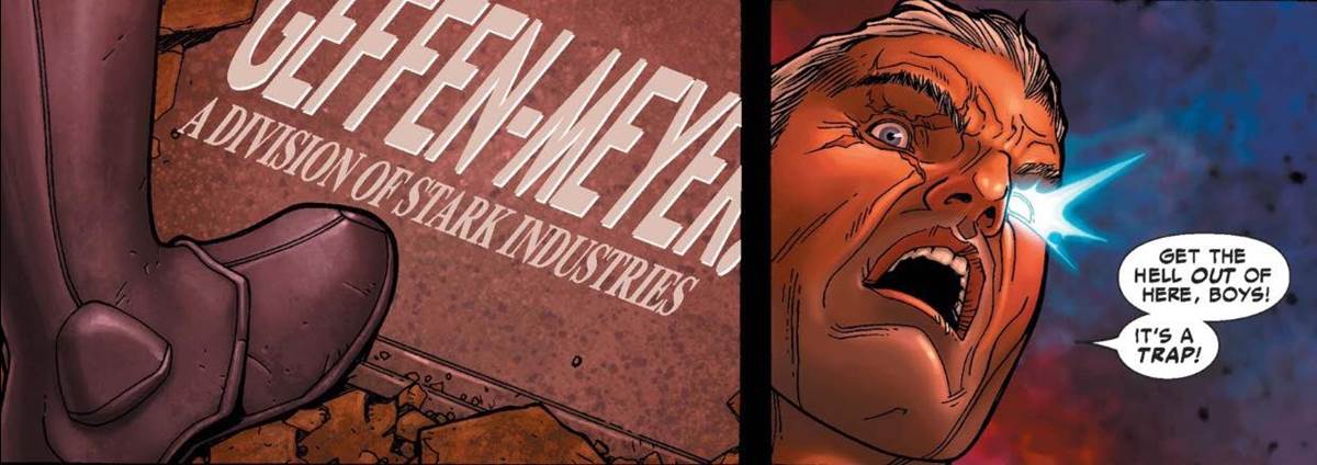 Geffen-Meyer Chemicals has had a few appearances throughout the history of Marvel Comics, but there is one that is far and away the most memorable and it came during the Superhero Civil War. In “Civil War #4,” Captain America and Iron Man had already drawn a line in the sand and picked their sides in the fight for superhuman registration. But even with Cap and his friends in hiding, they still responded to a distress call from a chemical plant that had caught fire because it was the right thing to do. When they got there though, they quickly learned that Geffen-Meyer Chemicals was a subsidiary of Stark Industries.
