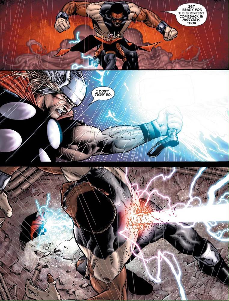 The clone proved to be very effective in the fight, pushing Cap’s team to their limits and nearly forcing the end of the war. Eventually though, the clone went a bit too far. Bill Foster, better known by his superhero name of Goliath, engaged the Thor clone and tried to turn the tides in the fight. The clone went far beyond his protocols and things didn’t end well for Foster…