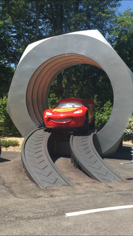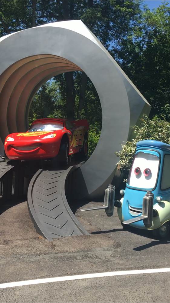 On our trip, we were greeted by many familiar faces, including Mater, Luigi and of course - Lightning McQueen himself, who was situated in (what Imagineers call) “The World’s Largest Lugnut.”
