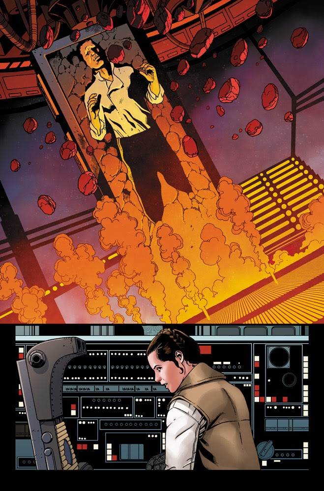 Princess Leia has made rescuing Han Solo a priority in issue #14 of the second volume of Marvel’s current main Star Wars comic book title. The issue, written by the highly acclaimed Charles Soule and illustrated by the extremely talented Ramon Sosanas, opens with Leia imagining Han being released from his carbonite prison. It’s an excellent tie-in to this summer’s Star Wars: War of the Bounty Hunters crossover event that takes place between the events of The Empire Strikes Back and Return of the Jedi.