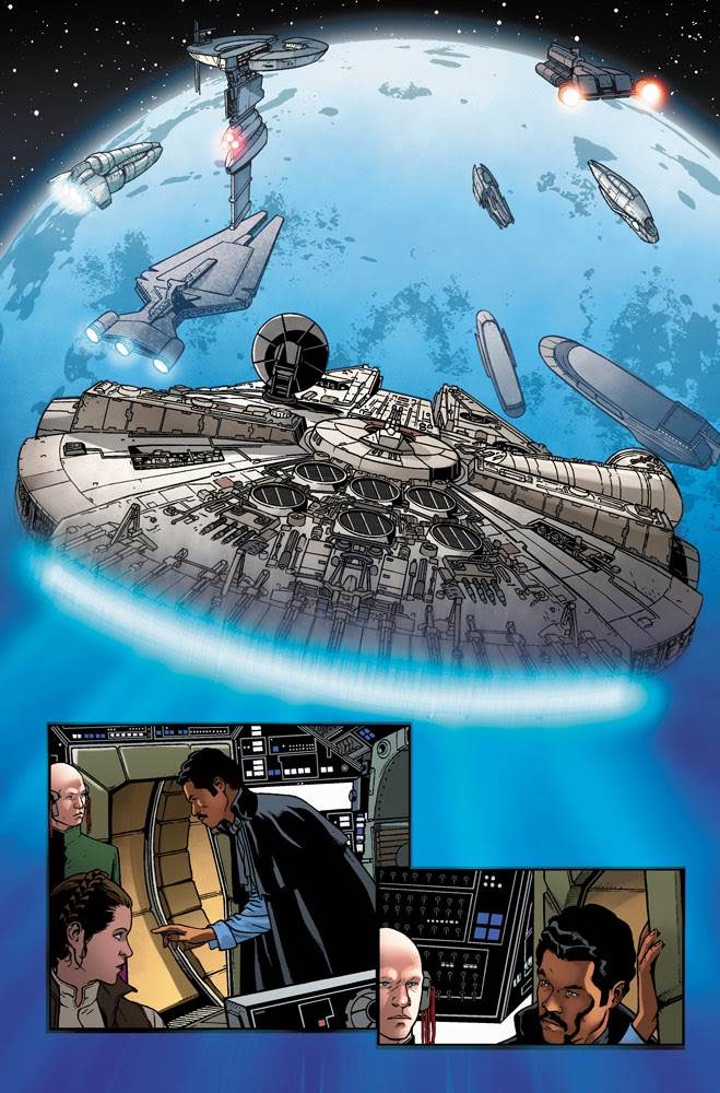 I’m absolutely loving the interconnectedness of War of the Bounty Hunters so far, and it’s gradually starting to dawn on me how important the release order of these comic books is. We, as readers, needed to find out about Crimson Dawn in the WOTB miniseries #1 before Leia could get the information here, and Threepio and Chewie needed to run into Beilert Valance on Nar Shaddaa in last week’s Star Wars: Bounty Hunters #13 before they could return to the rebel fleet with Luke Skywalker in this issue. The Holdo cameo also caught me off guard, and I’m really digging how Soule and the other Marvel Star Wars comic writers are pulling from all corners of the existing canon. But the real MVP here is Rosanas, whose evocative drawings-- accentuated indispensably by colorist Rachelle Rosenberg-- convey the emotional impact and sheer kinetic thrill of our heroes’ stalwart efforts to rescue their friend.
