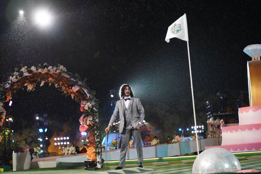Completely new for the season though is Holey Matrimony, where players (so far, we’ve seen a couple take on the challenge and we hope this is true for every time we see this hole) go head to head but to get to their balls on the green, but to do so, must run down the aisle (in this case, a super charged treadmill) towards a giant, spinning, ring. Once players get to the ring, they must then jump to the wedding cake and onto the green. Once again, if they do not complete this, it’s a stroke penalty.