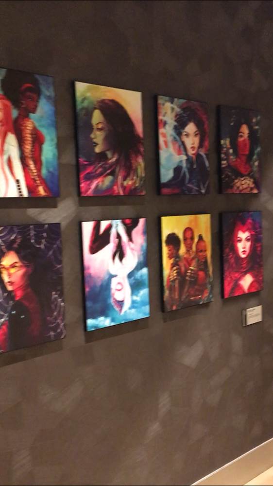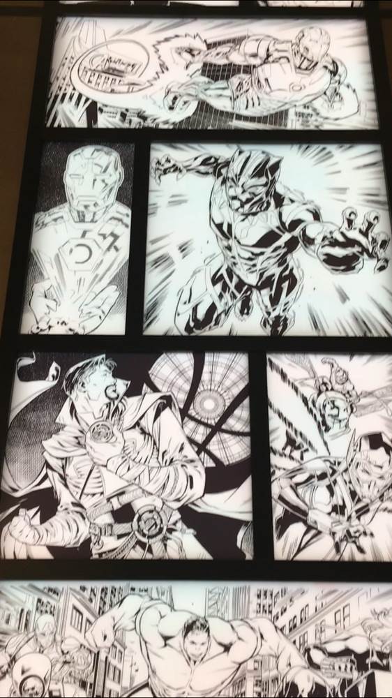 Some of the highlights from inside include this trio of Iron Man Suits, a giant backlit mural in the lobby, and - of course - the many great pieces of Marvel Art.